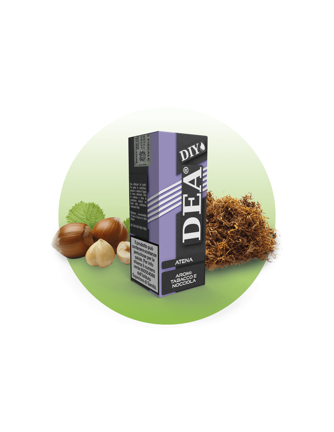 26 Atena DIY Aroma 10ml - DEA puo' tranquillamente definirsi un aroma per chi si avvicina alla sigaretta elettronica.Il gusto leggero e secco del tabacco Maryland si fonde al gusto deciso e tostato delle nocciole,conferendo un connubio di gusti che spaziano dal secco al deciso e con un piccolo retrogusto amarognolo simile alle classiche"bionde". Scopri al meglio le sue note aromatiche su sistemi MTL per uno svapo da guancia.