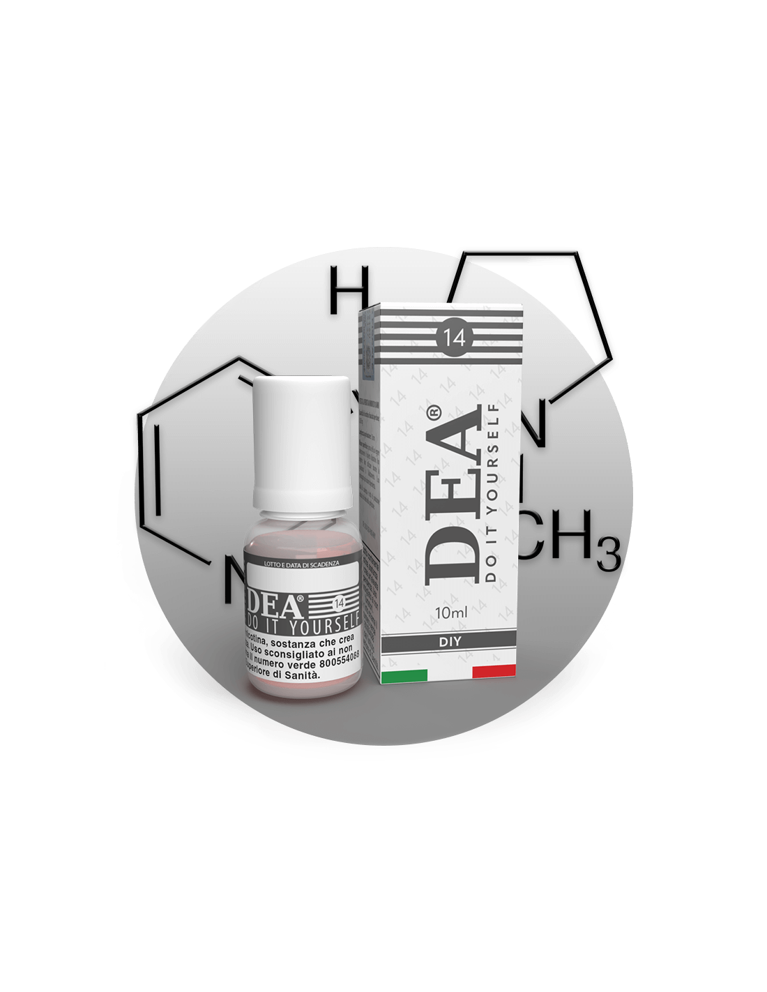 NicoShot Base DIY 14mg/ml 10ml - DEA, è composta da Glicerina Vegetale e da Glicole Propilenico di tipo Farmaceutico. Adatto per miscelare e nicotinizzare Aromi Concentrati, formati Shot, Mini Shot e Basi Neutre nella percentuale di nicotina che più preferisci.