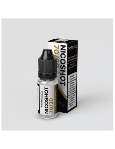 NicoShot 70/30 20mg/ml 10ml - SvapoNext, è composta per il 70% da Glicerina Vegetale e per il 30% da Glicole Propilenico di tipo Farmaceutico. Adatto per miscelare e nicotinizzare Aromi Concentrati, formati Shot, Mini Shot e Basi Neutre nella percentuale di nicotina che più preferisci.