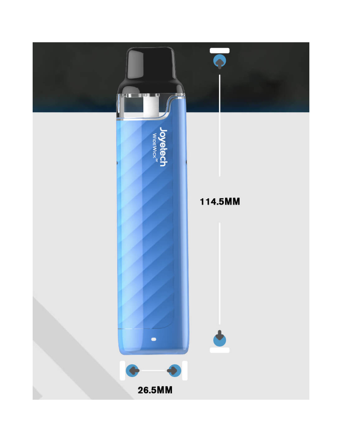 WideWick AIR Kit - Joyetech contiene cotone WideWick ™ all'interno, che rende l'assunzione completa di e-juice da tutto intorno, porta un riscaldamento equilibrato senza perdite. WideWick AIR Kit - Joyetech viene fornito con batteria integrata da 800 mAh, porta di ricarica USB-C. Il kit WideWick Air Pod è abbinato alla coil a mesh da 1,2 ohm. Con due ingressi del flusso d'aria situati su entrambi i lati, ti offrirà una fantastica esperienza di svapo MTL.