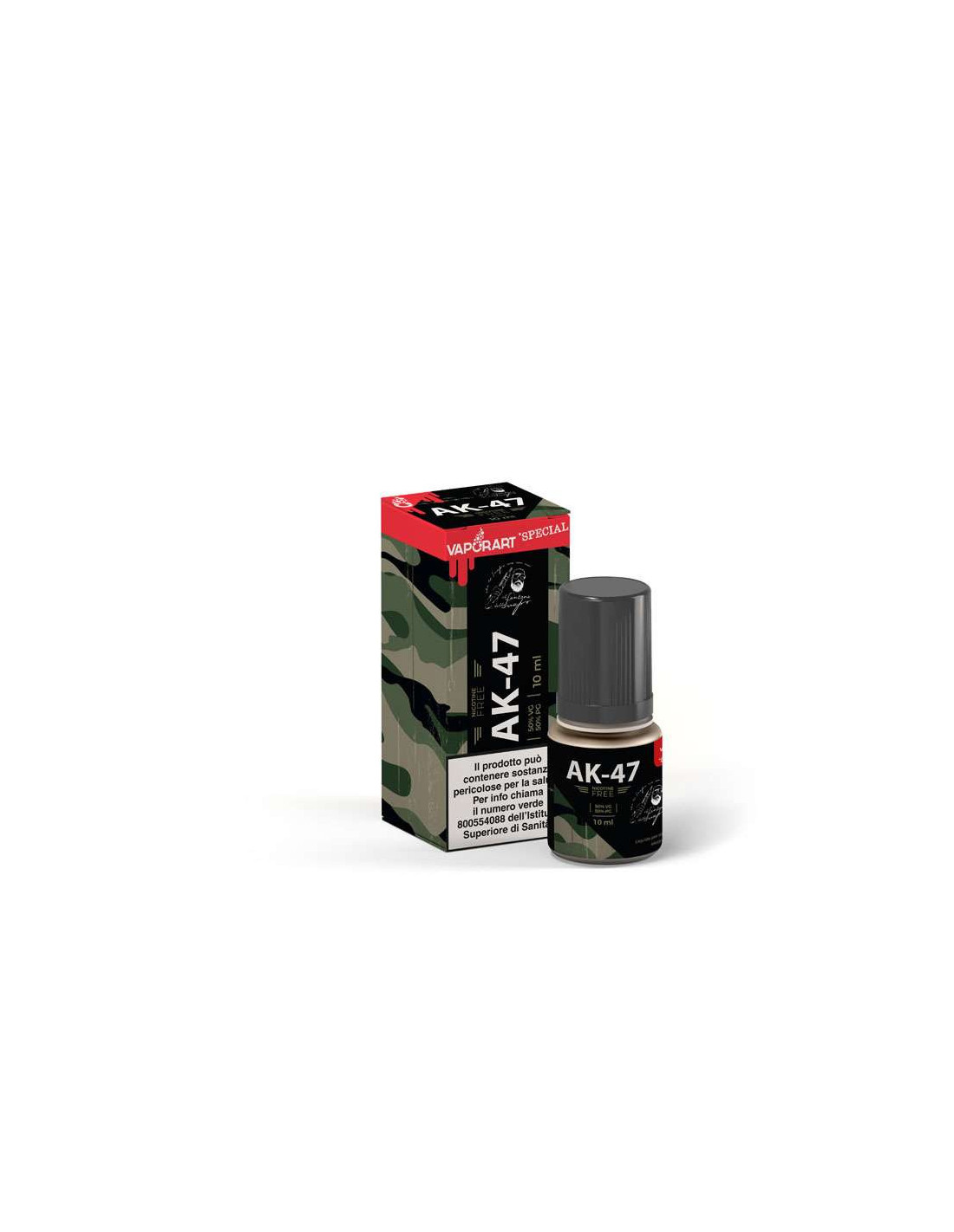 AK-47 Liquido pronto 10ml Tabacco Pipa - VaporArt è un prodotto Made in Italy della Linea Special di Vaporart, fornito in flacone di plastica 10ml e con tappo di sicurezza. Potrai scegliere la tua fragranza preferita con gradazione di nicotina 4mg/ml. La sua concentrazione 50VG/50PG ti permetterà di utilizzare sistemi MTL e Cloud Chasing per uno svapo da guancia e da polmone.