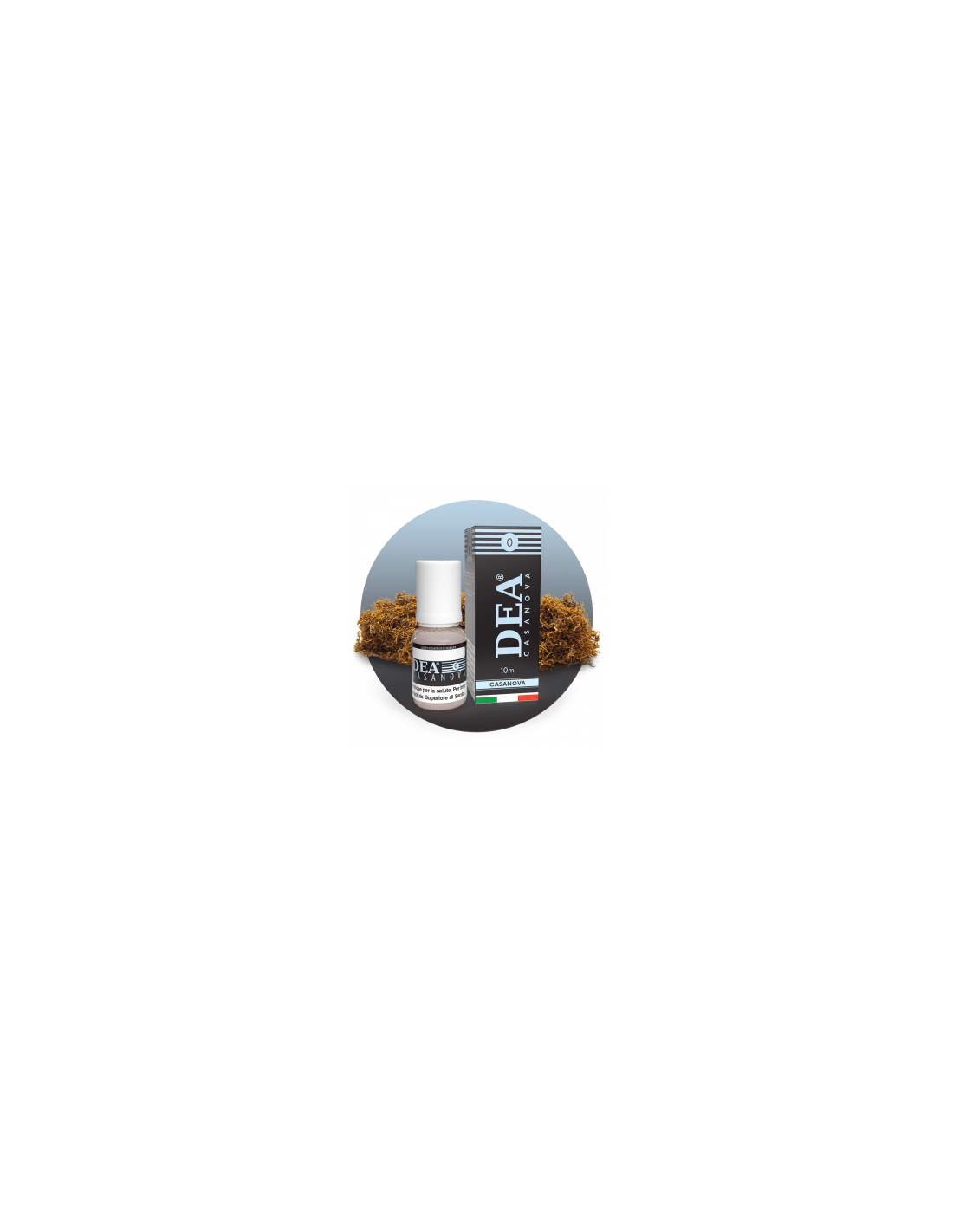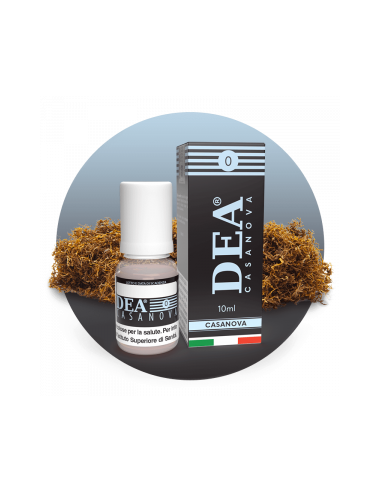 Casanova Liquido 10ml - DEA Flavor gusto dallo spiccato accento italiano, mix di tabacchi trinciati con sapore forte e leggermente erbaceo, provenienti da coltivazioni italiane.