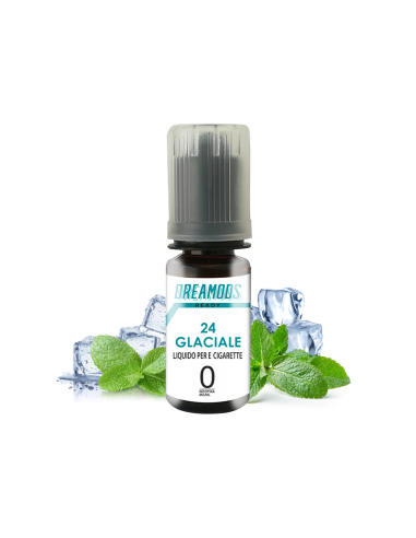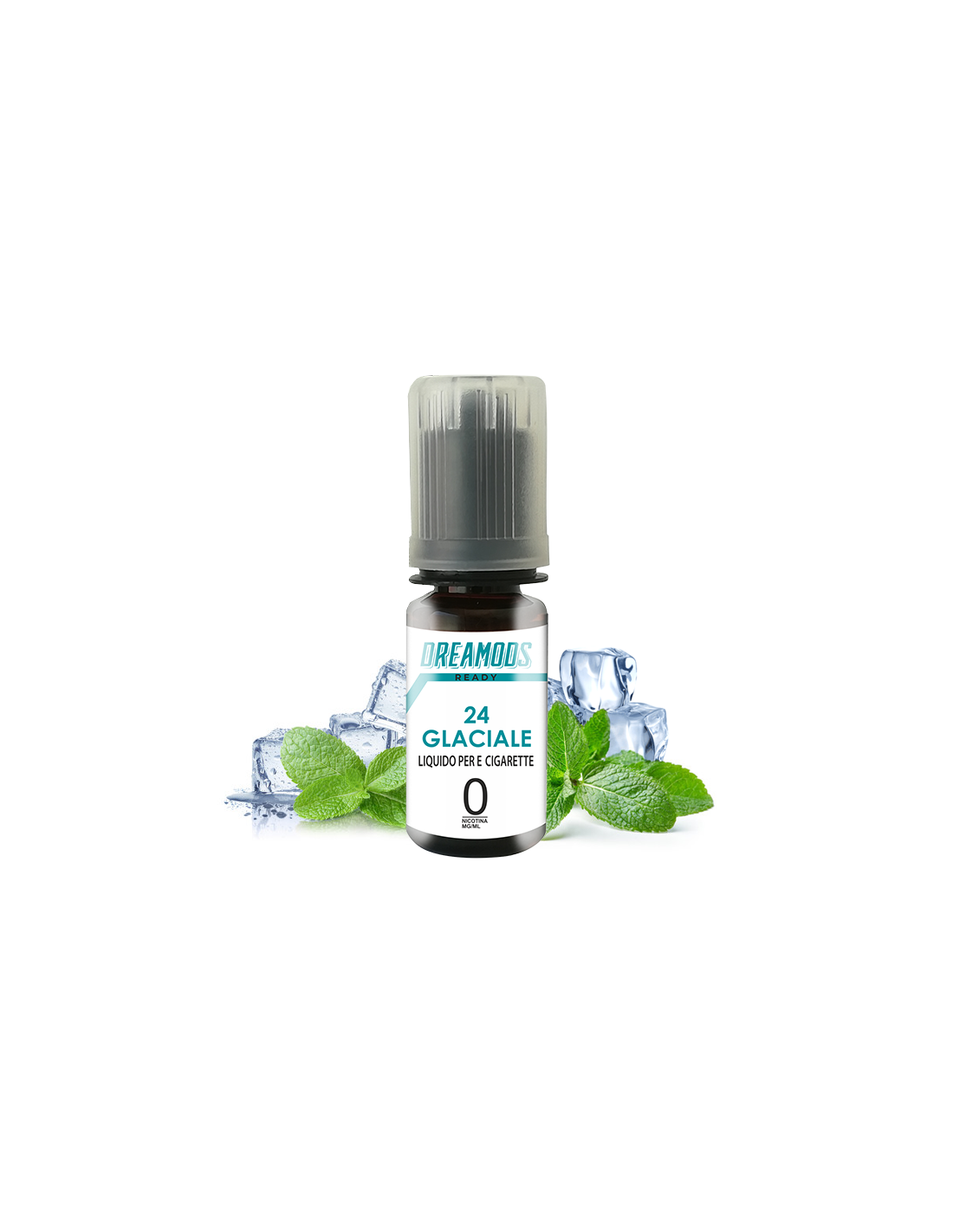 Glaciale No24 Liquido pronto 10ml - Dreamods è un prodotto Made in Italy della Linea Special di Vaporart, fornito in flacone di plastica 10ml e con tappo di sicurezza. Potrai scegliere la tua fragranza preferita con gradazione di nicotina 3,6mg/ml. La sua concentrazione 50VG/50PG ti permetterà di utilizzare sistemi MTL e Cloud Chasing per uno svapo da guancia e da polmone.