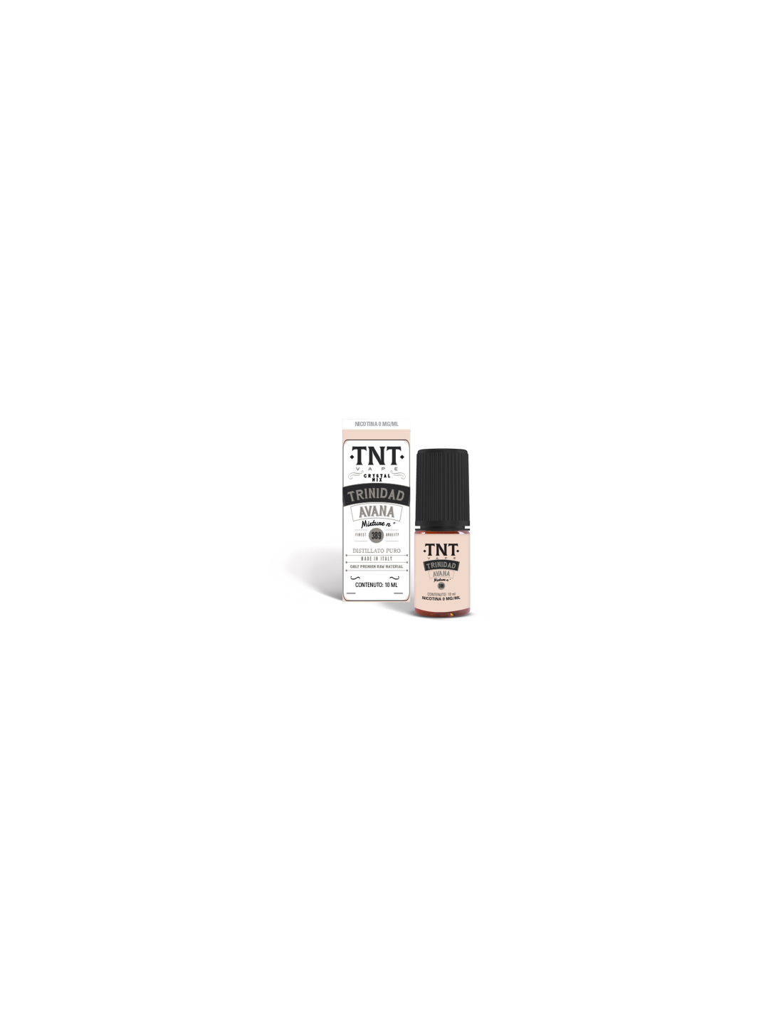 Trinidad Avana Distillato Puro Liquido pronto 10ml - TNT Vape fornito in flacone di plastica 10ml e con tappo di sicurezza. Potrai scegliere la tua fragranza preferita in diverse gradazioni di nicotina 0,4,8,12,16mg/ml. La sua concentrazione 50VG/50PG ti permetterà di utilizzare sistemi MTL per uno svapo da guancia.