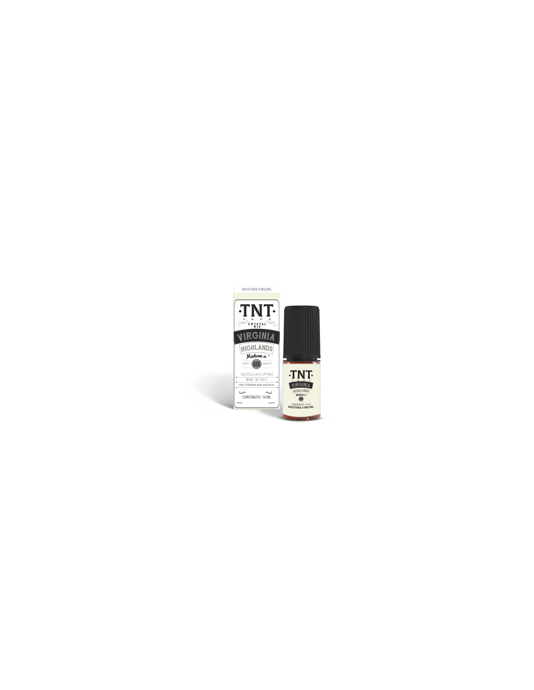 Virginia Higlands Distillato Puro Liquido pronto 10ml - TNT Vape fornito in flacone di plastica 10ml e con tappo di sicurezza. Potrai scegliere la tua fragranza preferita in diverse gradazioni di nicotina 0,4,8,12,16mg/ml. La sua concentrazione 50VG/50PG ti permetterà di utilizzare sistemi MTL per uno svapo da guancia.