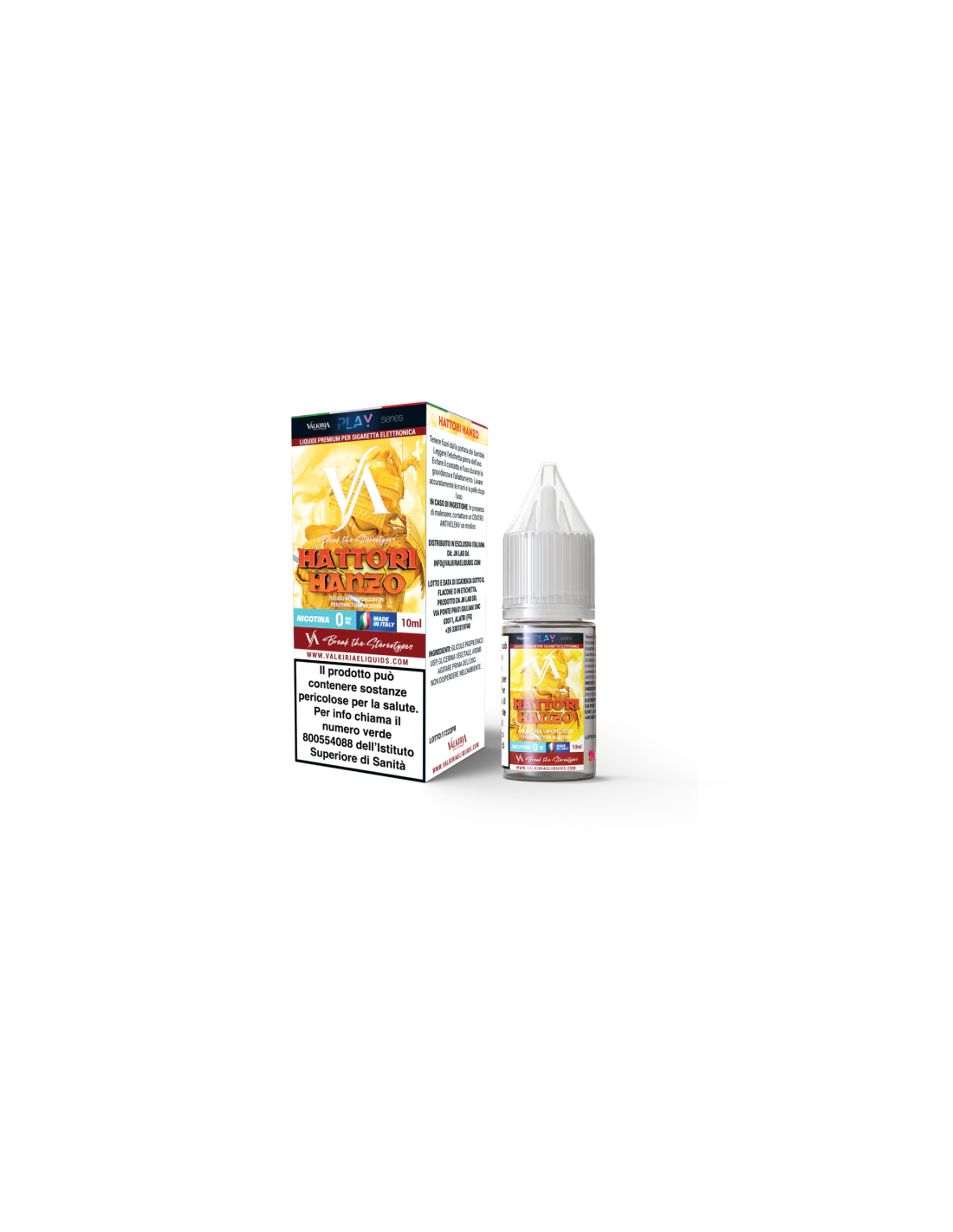 Hattori Hanzo Liquido 10ml - Valkiria è un prodotto Made in Italy di Valkiria, fornito in flacone di plastica 10ml e con tappo di sicurezza. Potrai scegliere la tua fragranza preferita in diverse gradazioni di nicotina 4,8mg/ml. La sua concentrazione 50VG/50PG ti permetterà di utilizzare sistemi MTL e Cloud Chasing per uno svapo da guancia e da polmone.