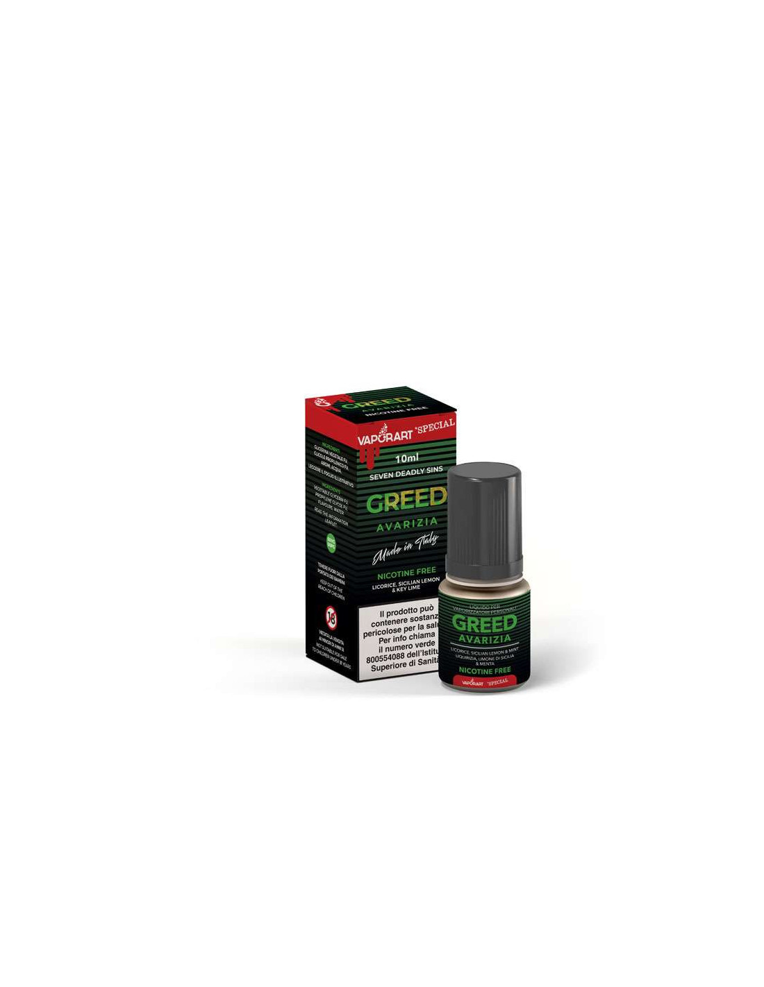 Greed Liquido pronto 10ml Liquirizia e Limone - VaporArt è un prodotto Made in Italy della Linea Special di Vaporart, fornito in flacone di plastica 10ml e con tappo di sicurezza. Potrai scegliere la tua fragranza preferita con gradazione di nicotina 4mg/ml. La sua concentrazione 50VG/50PG ti permetterà di utilizzare sistemi MTL e Cloud Chasing per uno svapo da guancia e da polmone.