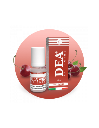 Red Twins Liquido 10ml - DEA Flavor sapore dal gusto di una inconfondibile confettura di ciliegie dal sapore deciso e dolce. Otiimo come "pausa" per chi svapa tabaccosi all-day.