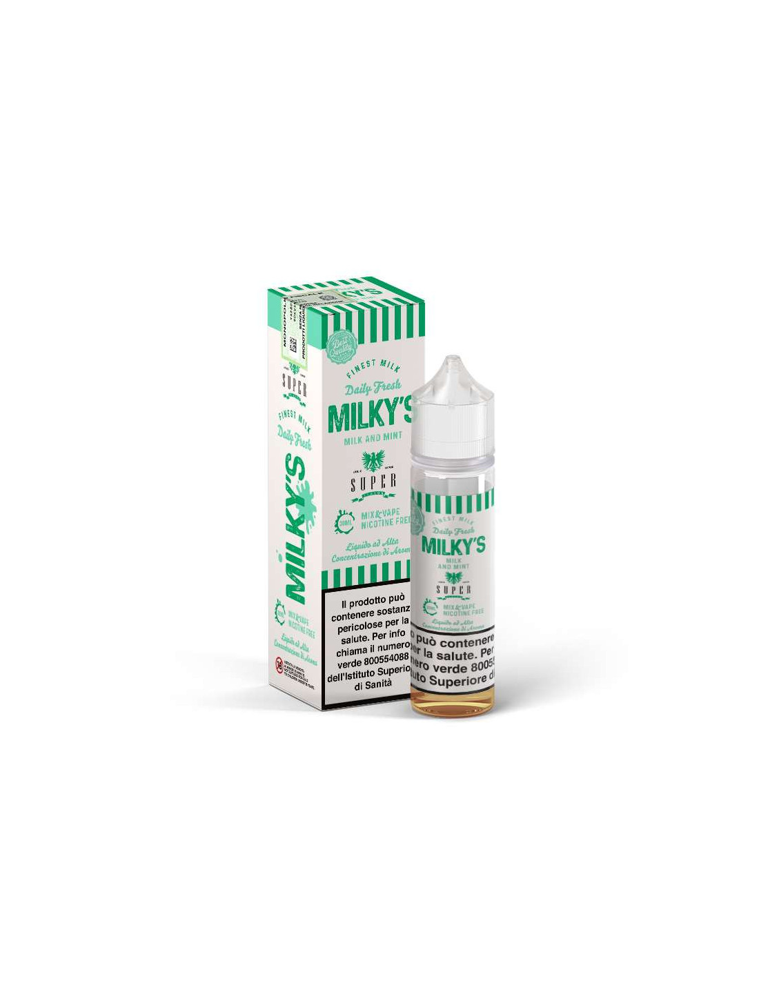 Milky's Milk and Mint Mix&Vape 30 ml - VaporArt è un prodotto Made in Italy della Linea Special di Vaporart, fornito in flacone di plastica 60ml e con tappo di sicurezza. Potrai scegliere la tua fragranza preferita con gradazione di nicotina 0mg/ml. La sua concentrazione 50VG/50PG ti permetterà di utilizzare sistemi MTL e Cloud Chasing per uno svapo da guancia e da polmone.
