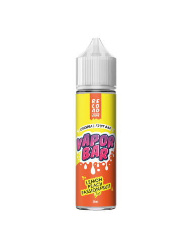 Lemon Peach Passionfruit Ice Aroma Shot 20ml - Reload Vape, formato per essere miscelato e diluito. Il sistema Shot permette di preparare con semplicità la tua miscela preferita. Sarà sufficiente aggiungere 30/40ml di base VG Glicerina Vegetale all’aroma per ottenere un liquido pronto da svapare.