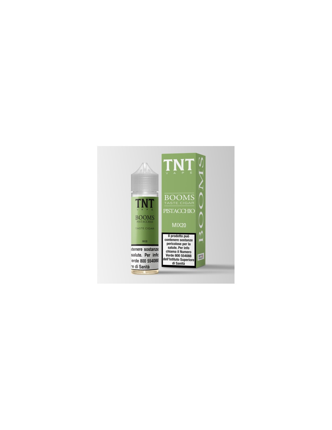Booms Pistacchio Aroma Shot 20ml 0mg - TnT Vape in flacone da 20ml è un Aroma Scomposto, formato per essere miscelato e diluito. Il sistema Shot permette di preparare con semplicità la tua miscela preferita. Sarà sufficiente aggiungere 30/40ml di base VG Glicerina Vegetale all’aroma shot per ottenere un liquido pronto da svapare.