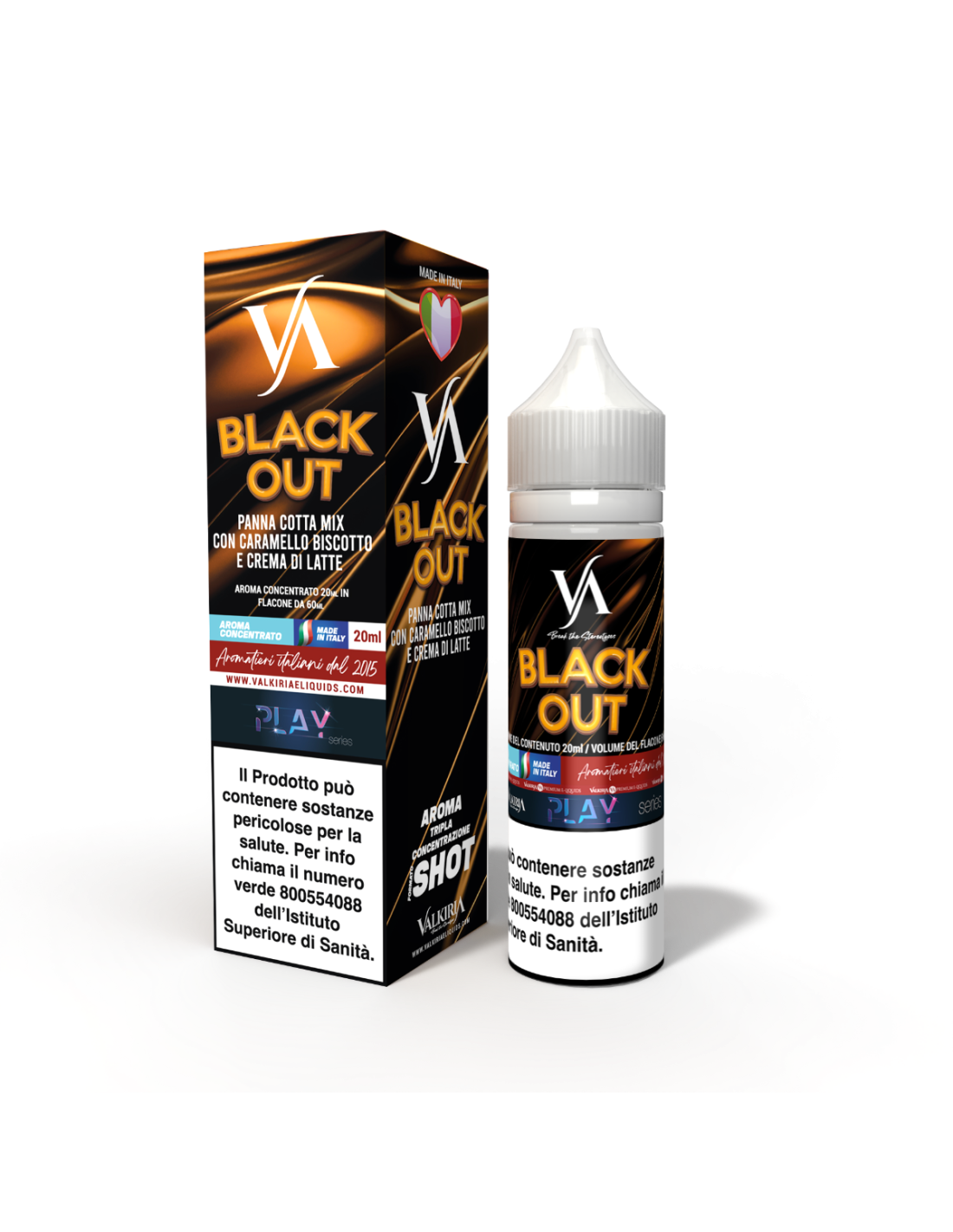 Blackout Remastered Edition Aroma Shot 20ml 0mg - Valkiria è un Aroma Scomposto, formato per essere miscelato e diluito. Il sistema Shot permette di preparare con semplicità la tua miscela preferita. Sarà sufficiente aggiungere 30/40ml di base VG Glicerina Vegetale all’aroma shot per ottenere un liquido pronto da svapare.