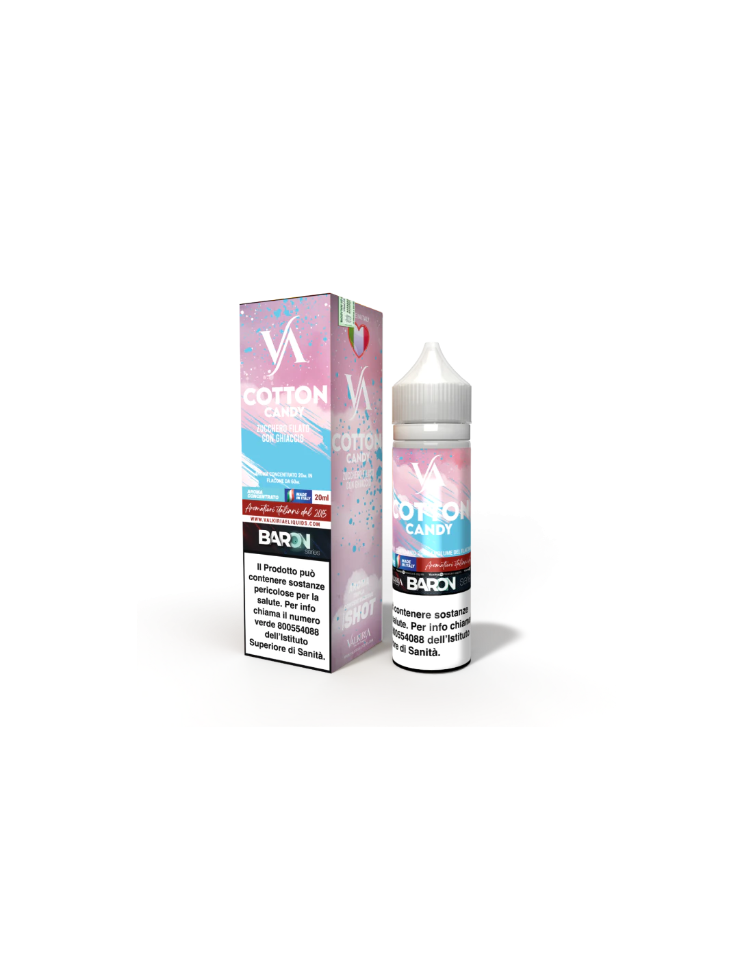 Cotton Candy Aroma Shot 20ml 0mg - Valkiria è un Aroma Scomposto, formato per essere miscelato e diluito. Il sistema Shot permette di preparare con semplicità la tua miscela preferita. Sarà sufficiente aggiungere 30/40ml di base VG Glicerina Vegetale all’aroma shot per ottenere un liquido pronto da svapare.