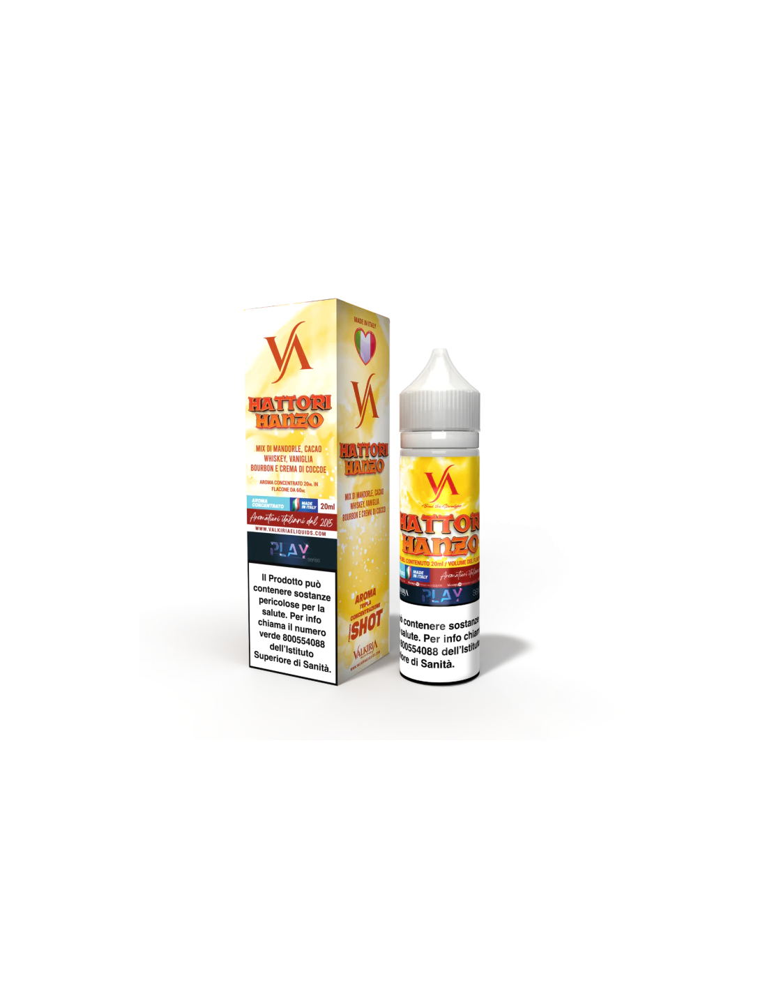 Hattori Hanzo Play Aroma Shot 20ml 0mg - Valkiria è un Aroma Concentrato, formato per essere miscelato e diluito. Scegli tra una vasta gamma di gusti diversi la tua miscela preferita. Sarà sufficiente diluire il prodotto al 15-20% con una base VG Glicerina Vegetale per ottenere un liquido pronto da svapare.