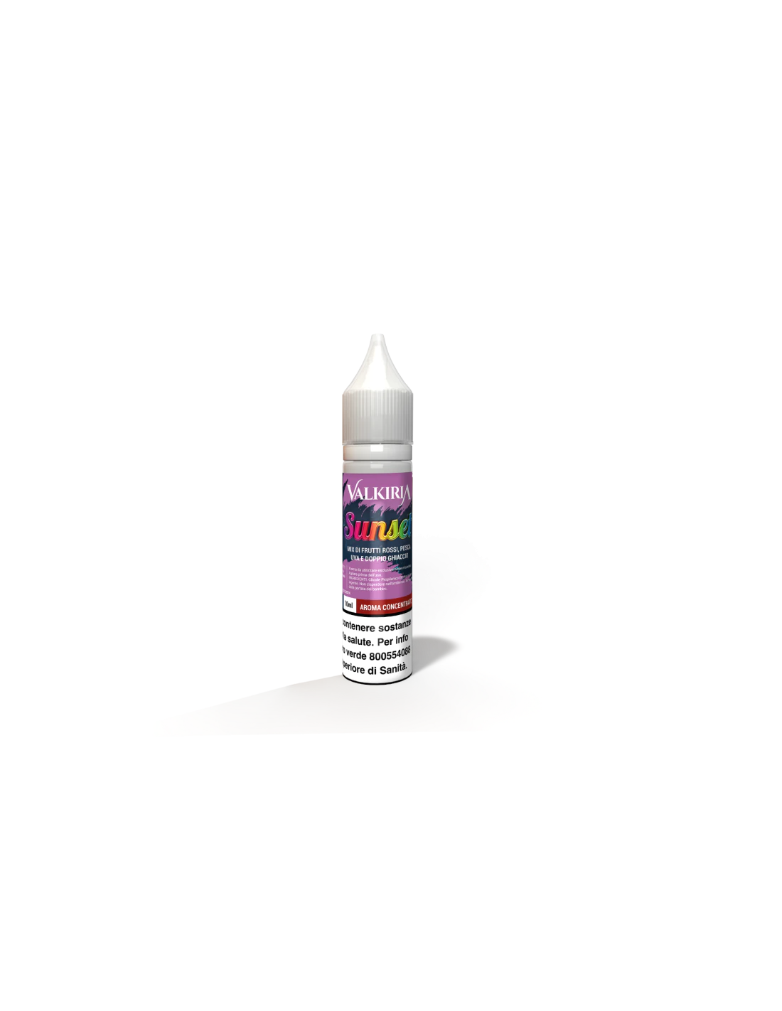 Sunset Mini Shot Aroma 10+10 - Valkiria in flacone da 20 ml è un Aroma Scomposto, formato per essere miscelato e diluito. Il sistema Mini Shot permette di preparare con semplicità la tua miscela preferita. Sarà sufficiente aggiungere 10/20ml di base VG Glicerina Vegetale all’aroma per ottenere un liquido pronto da svapare.